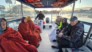 Wednesday started the first of two extremely early days. We were out the door by 5:15 (which, remember, is three hours ahead of Oregon time, so 2:15). The reason is that we were taking the 7:00am boat back to Three Sisters’s Springs. The entrance (that narrow one) wasn’t open, having been closed off to protect the manatee friends. But it turned out not to matter.