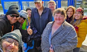 It was a cold day, and eventually everyone (even me) got past their cold tolerance, and we went back to the boat. KW was heading up the rear and got a final goodbye from one of our new friends that is keeping her high a week later.