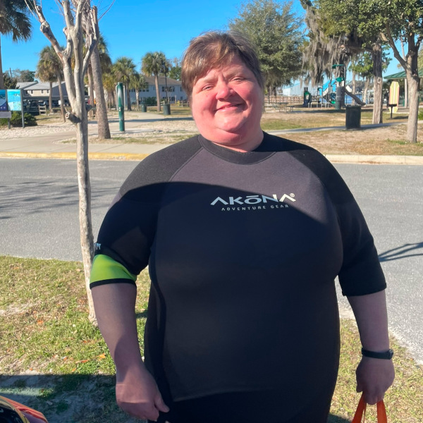 Hunter Springs turned out to be a little park with a sandy entrance to the water. There were only a few manatees there, but the water quality was WONDERFUL. I was the first one into the water… this time in a zipped wetsuit! Outside the water, it was hovering around freezing, but the water was a balmy 68 degrees and I enjoyed every moment.