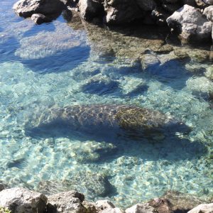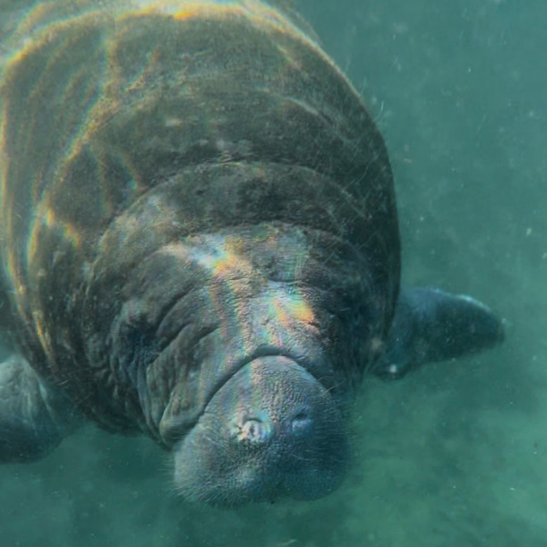 At least twice a young manatee came up and nuzzled my face and arms (could I nurse?). But there were so many manatees, people, boats, water, rocks, etc. that I think a lot of the experience gets lost in translation. Let me assure you, though, this was one of the best things I have ever experienced. We were not supposed to float about them, which was hard because they kept appearing. We were not supposed to pet them, but… well… I have to confess that when they nuzzled me, I could not resist a chin scritch. No one could have.