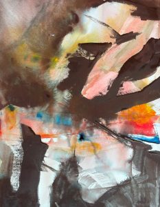 At the fall convention, Terri Gonzalez won a prize with her beautiful mountain painting. She agreed to do a breakout session demonstrating her technique, and the examples before are indicative of my newness to the process, not Terri’s instruction. In point of fact, before I decided to “just try something” I was loving what the directions were giving me!