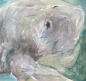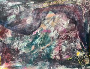 I have loved Pam‘s work for years, so I was excited to take her breakout. She said we would be painting on “pasted fibers”. What she meant was Golden Fiber Paste. I had seen it before, but had never used it. While I was (as always) unable to follow directions, I loved what I came up with and may have to invest in some paste of my own. It works great on manatees…