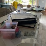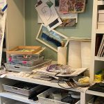 The quarterly gallery turnover is upon me, and I spent significant time this week deciding what would go to the gallery, what would be returned, and trashing the house in the process. The cats love this. Me… not so much.