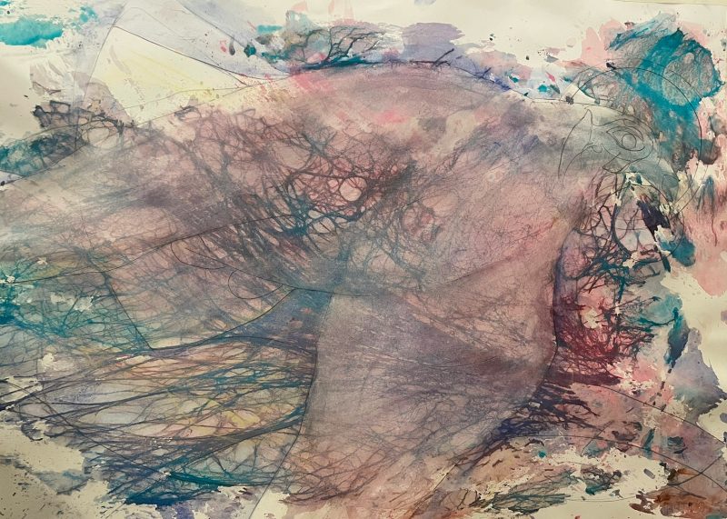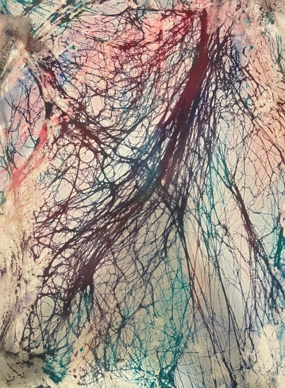 I have continued to love this painting in the last four years, but it is a painting associated with my 2022 breakdown, and it has been difficult to return to. But, inspired by all these other full sheet webbing started paintings, I have!